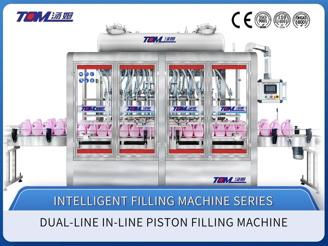 Die automatische Laundry-Liquid-Fülllinie 1-5L ist eine hocheffiziente Verpackungslösung, die speziell für die tägliche chemische Industrie entwickelt wurde.StoffweichmacherDas System ist mit einem intelligenten PLC-Steuerungssystem ausgestattet, das automatische Flaschenzufuhr, Füllung, Verschluss, Kennzeichnung,und Lieferung des fertigen Produkts, wodurch eine vollautomatisierte Produktion mit hoher Effizienz und Füllgenauigkeit erreicht wird.